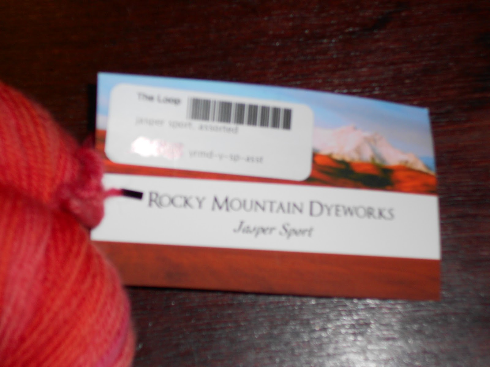 Rocky Mountain Dyeworks, Jasper Sport, 100% Superwash Merino, 50 grams, 146 meters and the colour is called "Fire Rose". Now - what to make... I'm thinking fingerless gloves, but would love some suggestions.