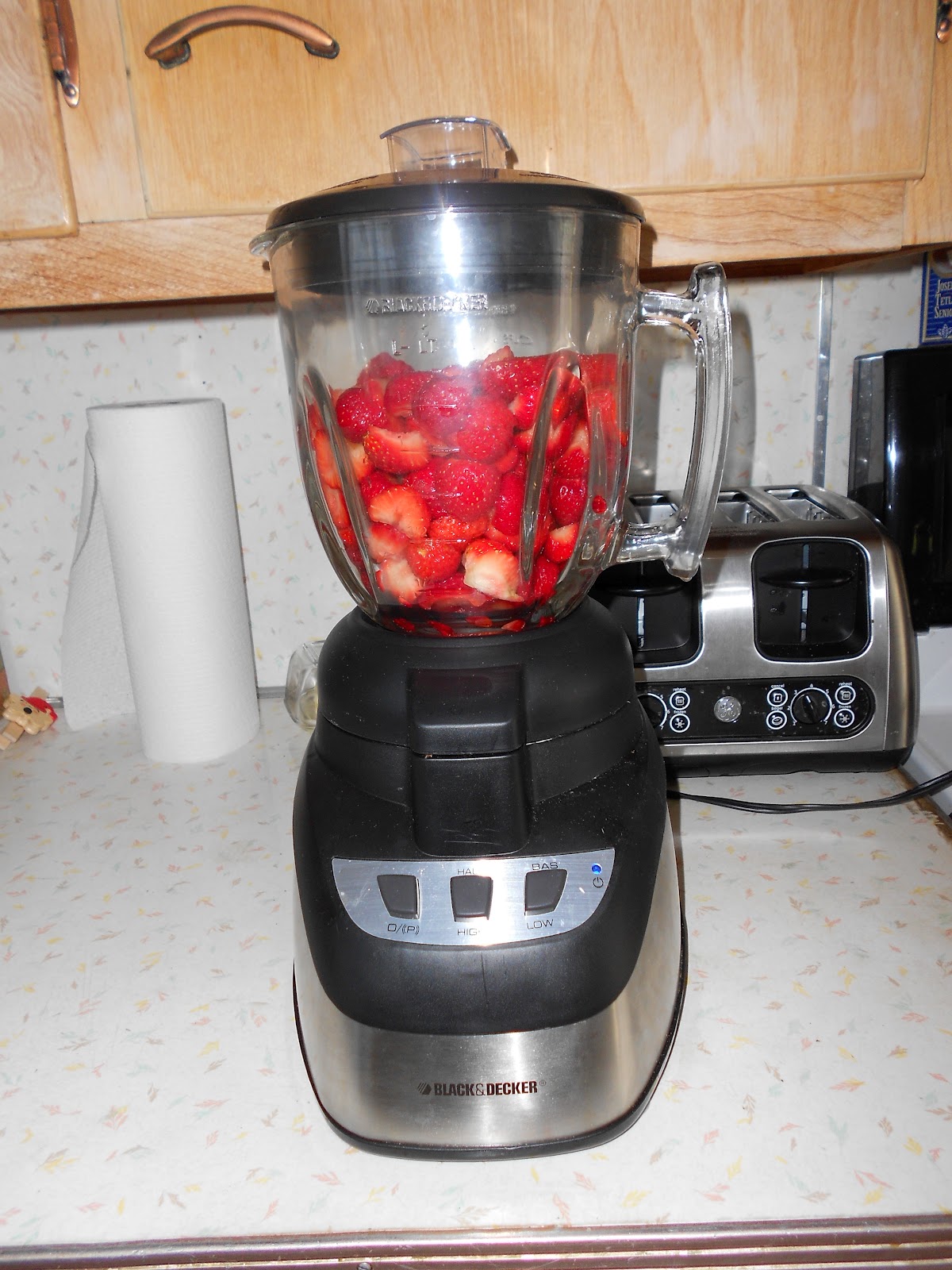 The small bottles on the right we used for "jam bombing" around the office, but the big ones, will help to sustain Younger Son through the long, cold, winter months. Spoiled and fussy child (not really) only really like homemade jam... 10 quarts of strawberries turned into jam. Here is hoping it meets his needs for the next year!